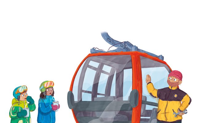 Es ist Winter. Deswegen sind Aliya und Andi mit ihren Skiern unterwegs. Dabei treffen sie Andis Onkel Michel, der bei der Seilbahn arbeitet. Spannend! Da wollen die Kinder natürlich mehr wissen …